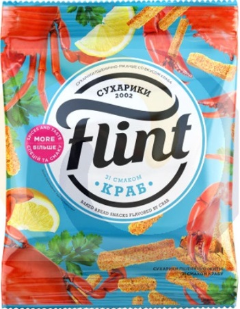 Suchary Flint o smaku kraba, wykonane z pszenicy i żyta